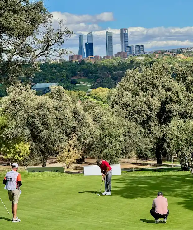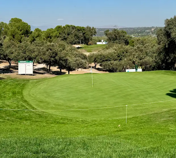 Sus 18 hoyos serpentean entre encinas, pinos y desniveles, con excelentes panorámicas de la ciudad de Madrid. A continuación, te comparto mis rincones favoritos para disfrutar el torneo desde dentro.